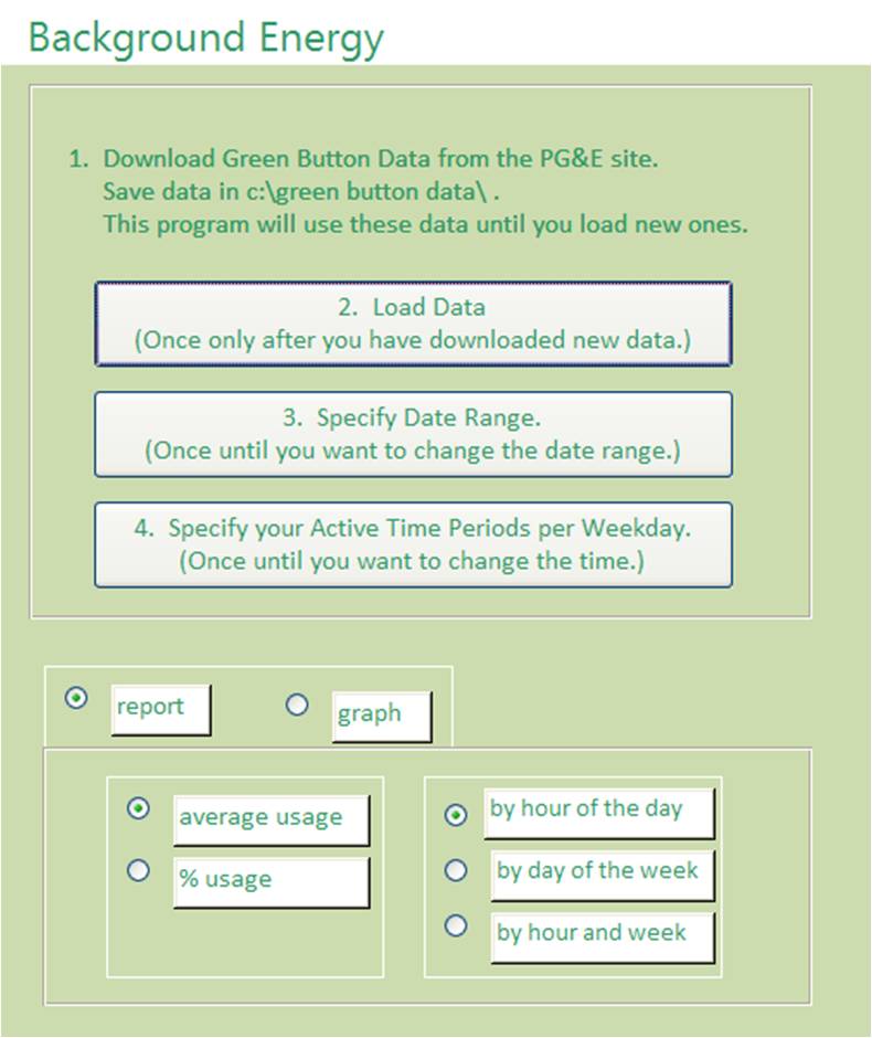 This application allows electricity customers to determine their daily active energy usage and their daily background energy usage. This may bring awareness to what appliances are consuming background energy and consequently reducing the background energy usage.